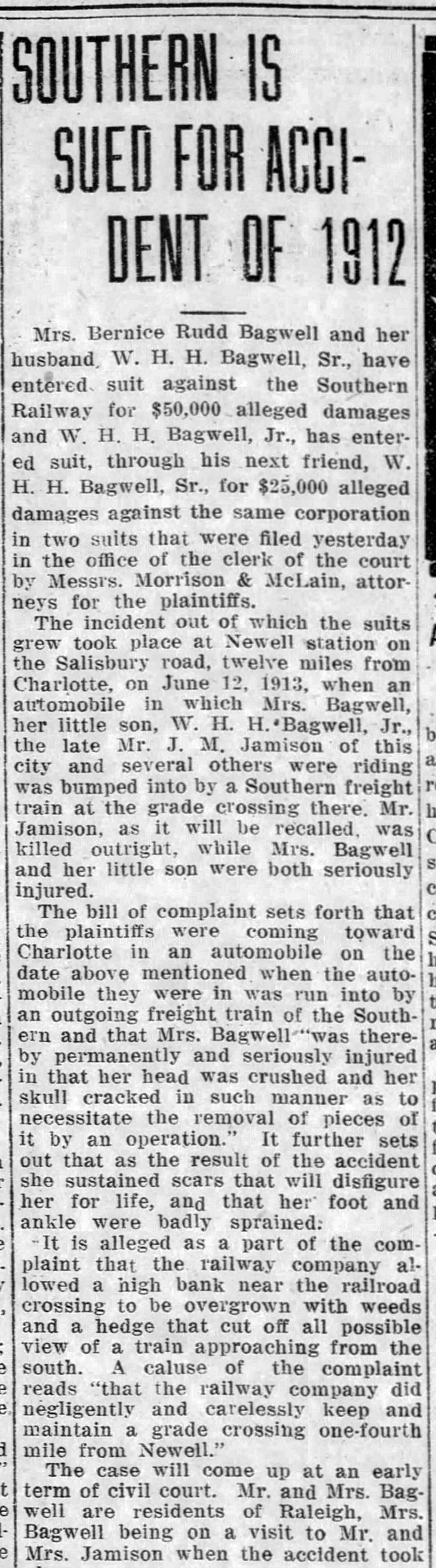 Bernice (Rudd) Bagwell and William Henry Hawes Bagwell - Accident / News Article