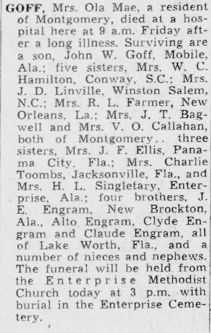 Ola Mae (Engram) Goff - Obituary