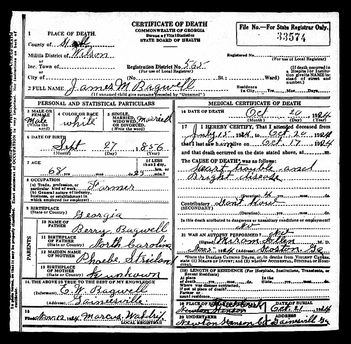 James Madison Bagwell - 1856 to 1924