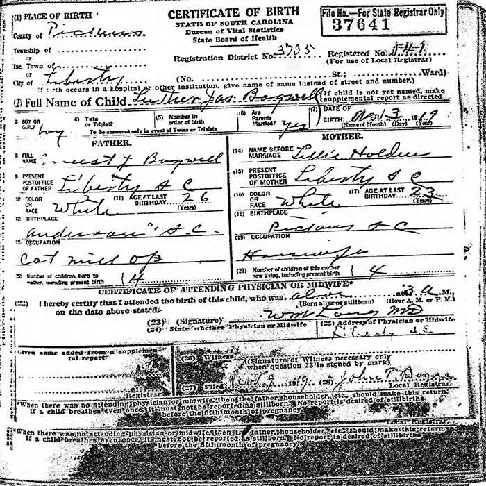 Certificate of Birth - State of South Carolina