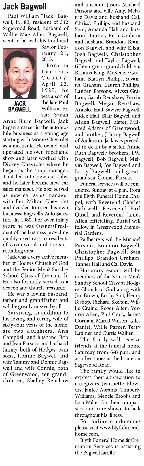 Paul William "Jack" Bagwell, Jr.'s Obituary