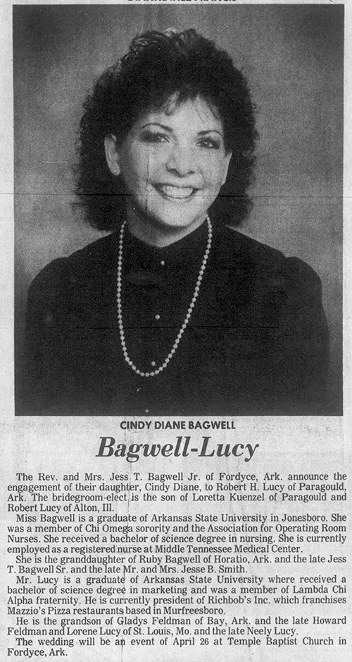 Bagwell - Cindy Diane Bagwell / Robert H. Lucy Marriage Annoucement