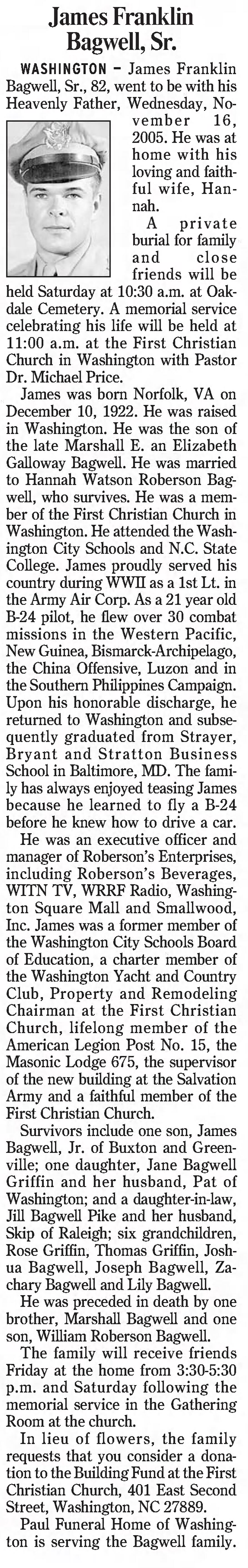 James Franklin Bagwell, Sr (1922 to 2005) - Obituary