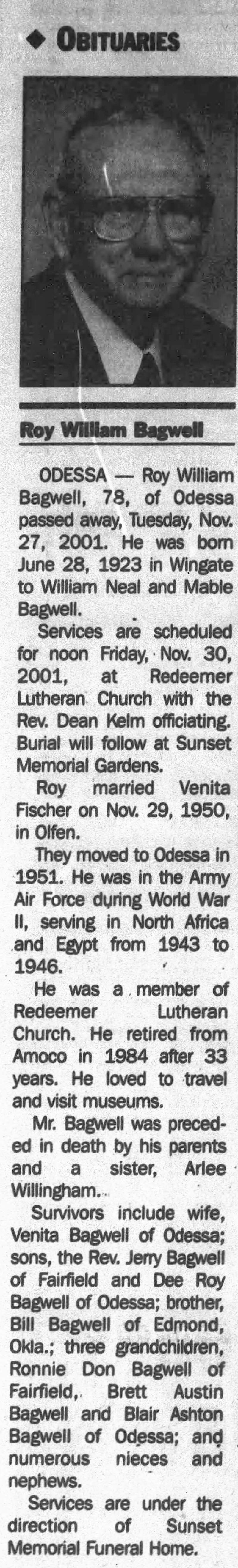 Roy William Bagwell's Obituary