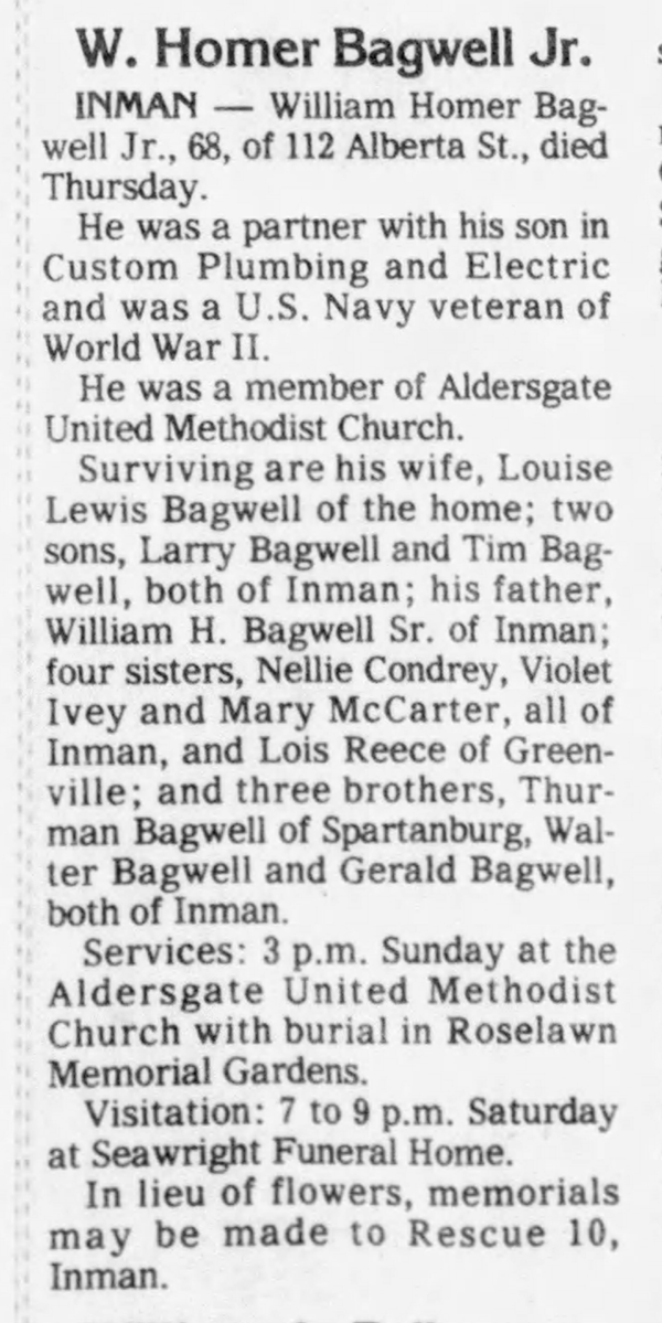 William Homer Bagwell, Jr's Obituary