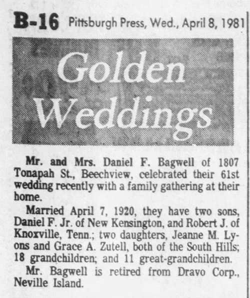Daniel Fowle & Marie A. (Rodgers) Bagwell - Anniversary