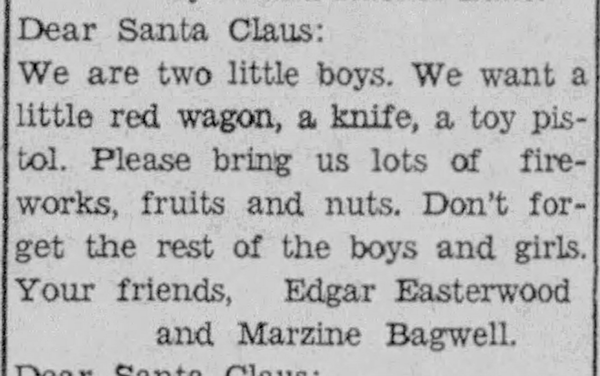 Marzine Morris Bagwell - Letter to Santa Claus