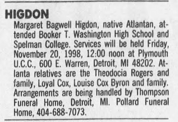 Margaret Virginia (Bagwell) (Dunbar) Higdon - Obituary
