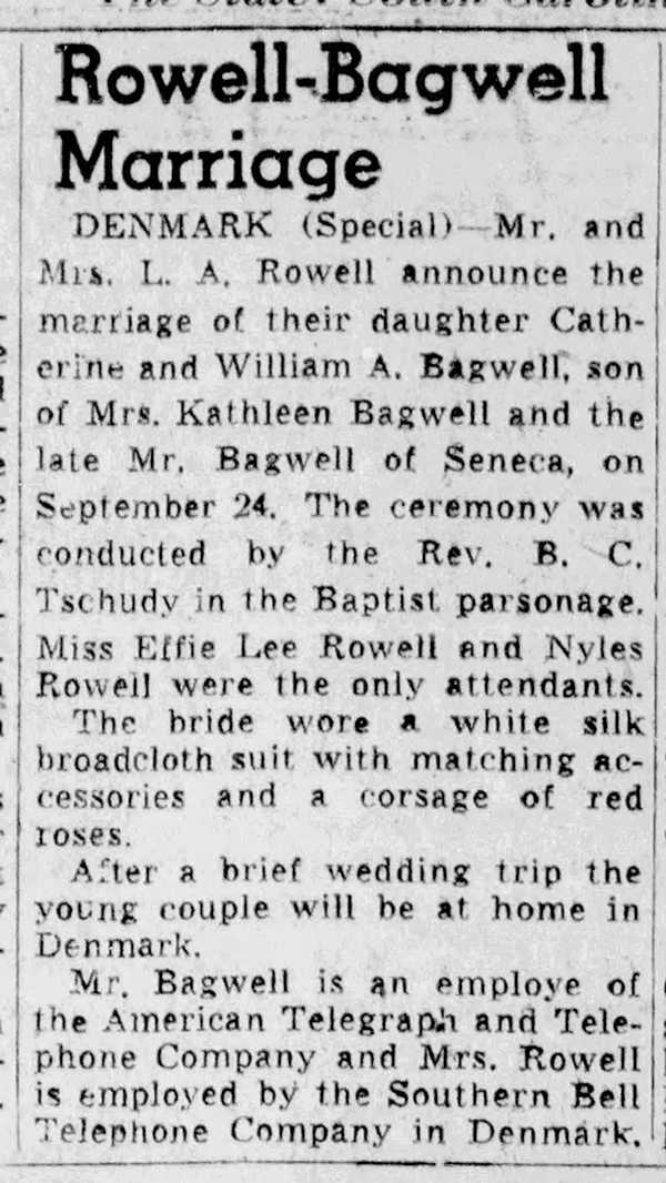 William Alan Bagwell and Catherine Rowell - Marriage Annoucement