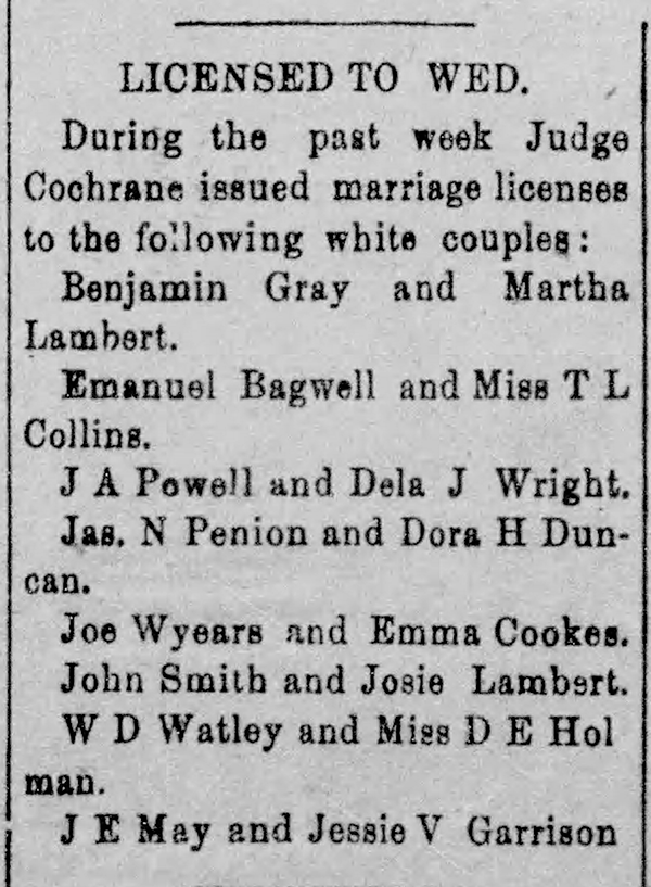 Emanuel Bagwell and T. L. Collins - Marriage License Annoucement