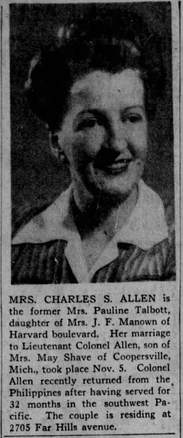 Pauline Virginia (Manown) Allen - Marriage Annoucement