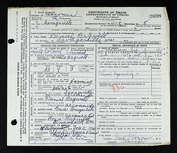 Certificate of Death, Commonwealth of Virginia