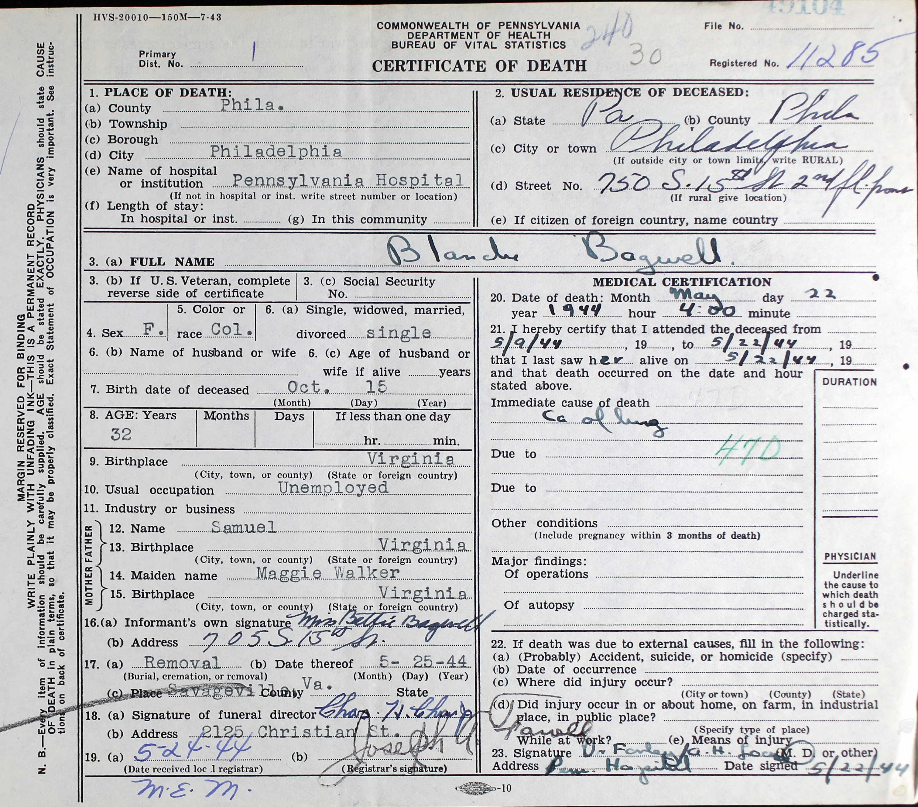 Commonwealth of Pennsylvannia - Certificate of Death