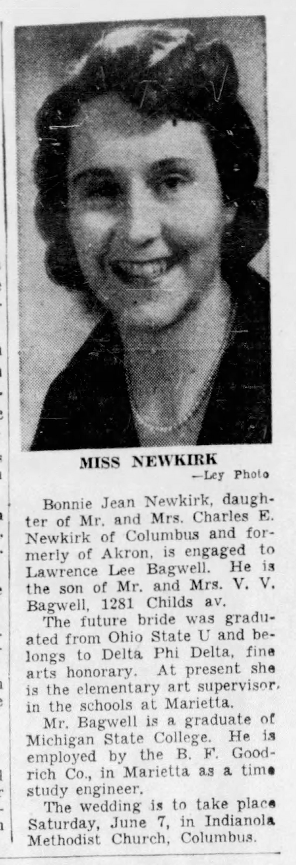 Lawrence Lee Bagwell and Bonnie Newkirk - Marriage Annoucement
