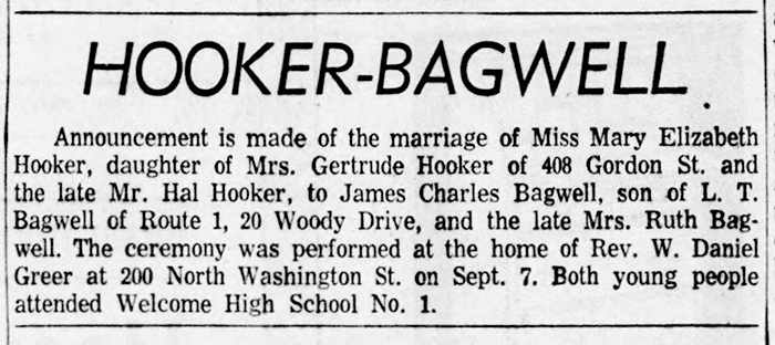 James Charles Bagwell and Mary Elizabeth Hooker - Marriage Annoucement