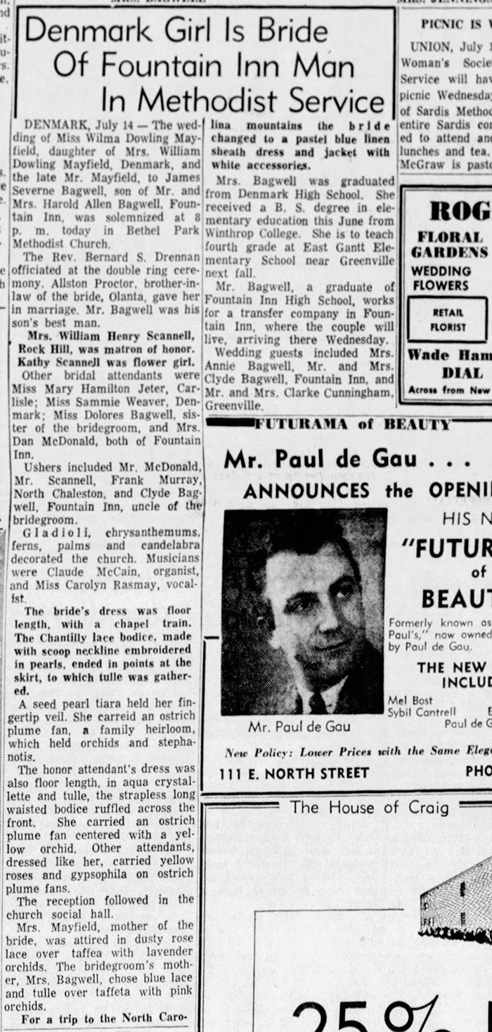 James Severne Bagwell and Wilma Mayfield - Marriage Annoucement