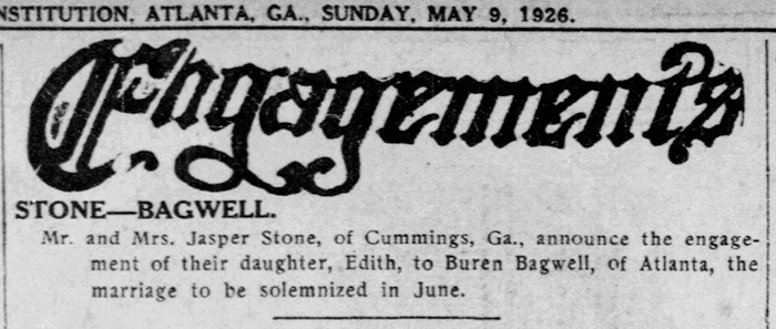 Buren Herbert Bagwell and Edith Stone - Engagement Annoucement