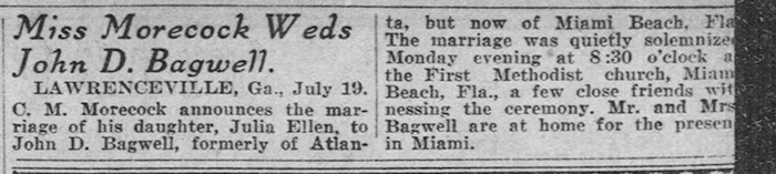 John Daniel Bagwell and Julie Ellen Morecock - Marriage Annoucement