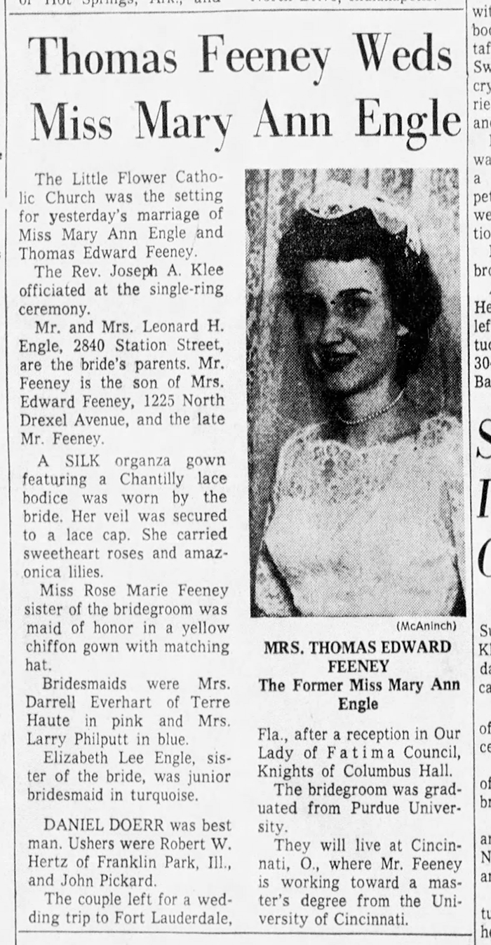 Mary Ann Engle and Thomas Feeney - Marriage Annoucement