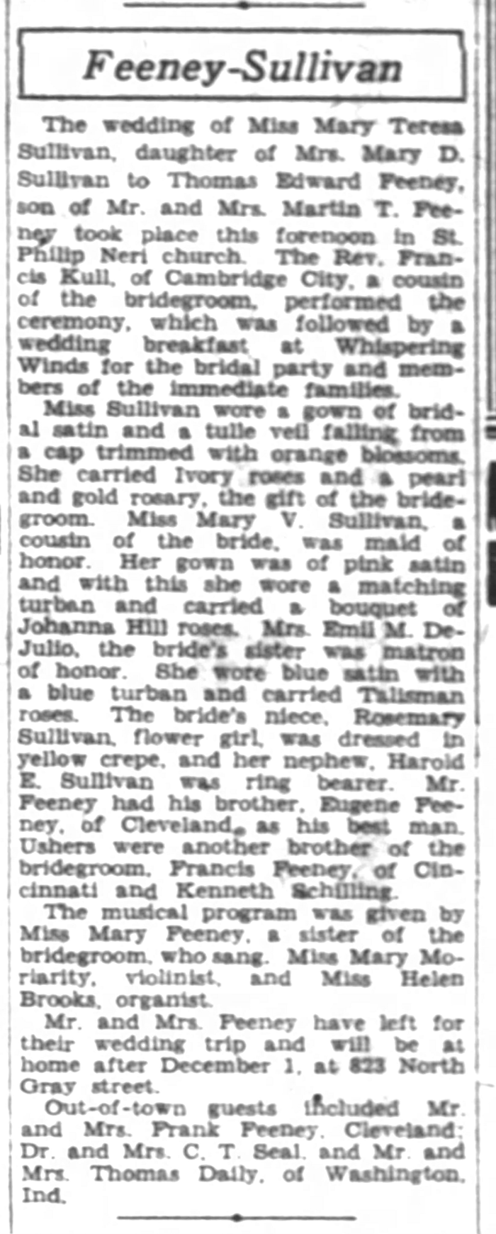 Thomas Edward Feeney and Mary Sullivan - Marriage Annoucement