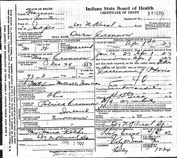 Certificate of Death - State of Indiana