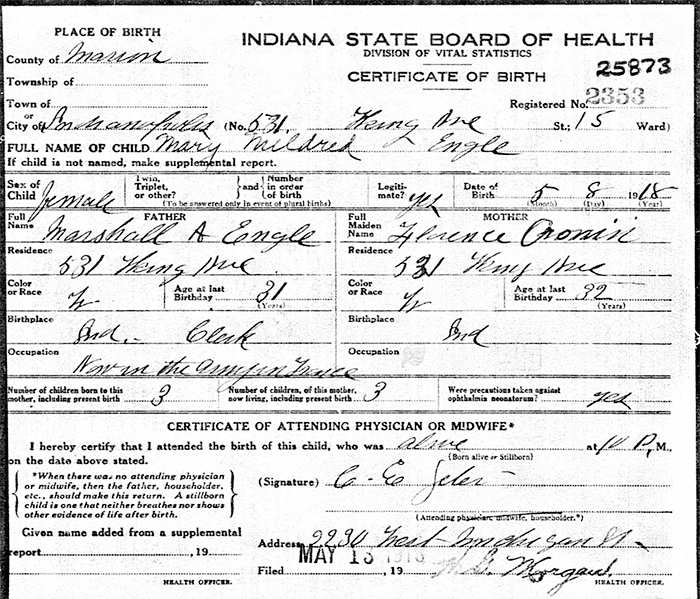 Certificate of Birth - State of Indiana