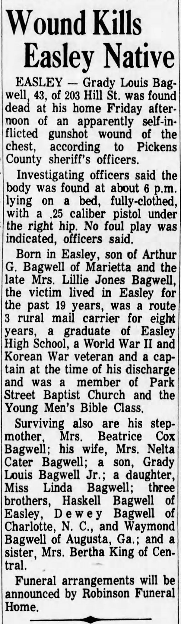 Grady Louis Bagwell - Obituary
