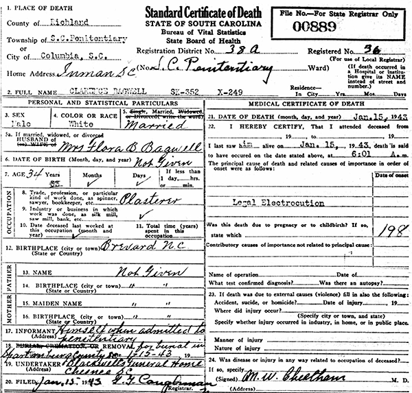 Certificate of Death - State of South Carolina