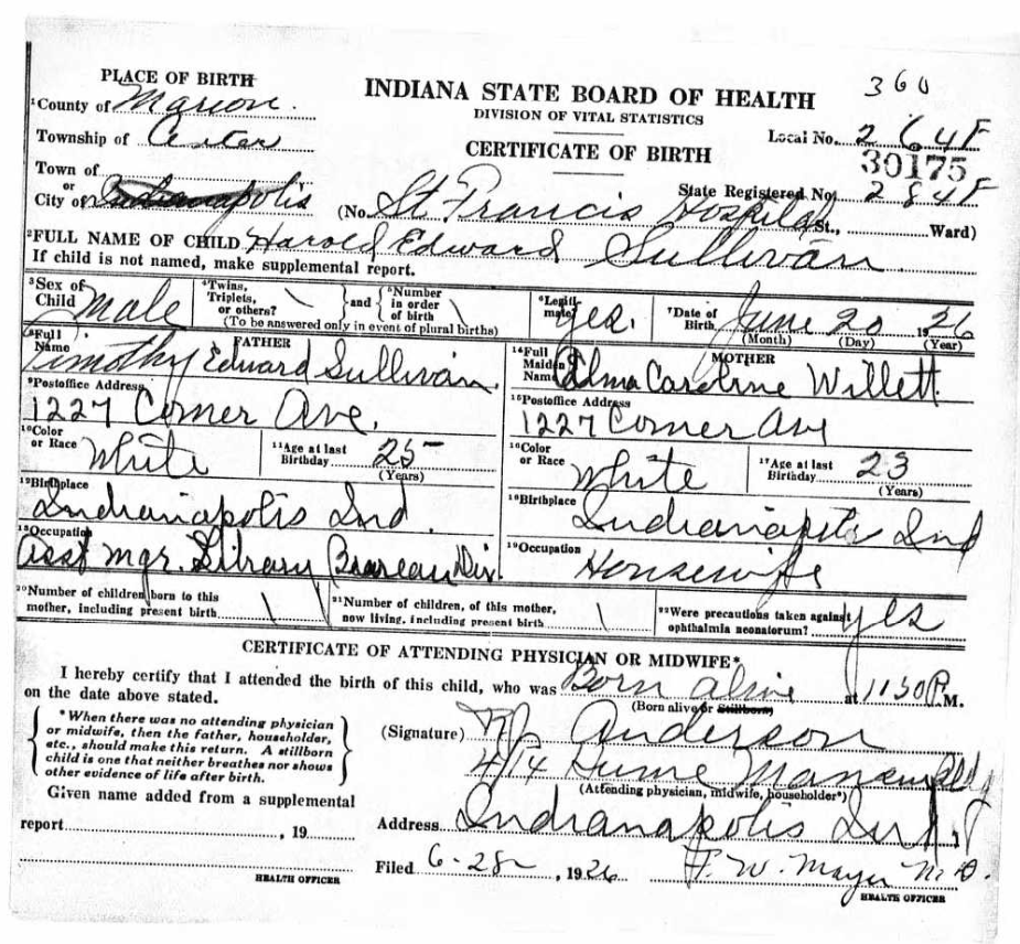 Certificate of Birth - State of Indiana