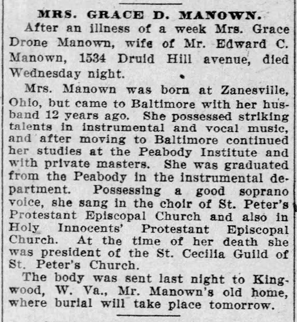 Grace Drone (Ebert) Manown - Obitaury