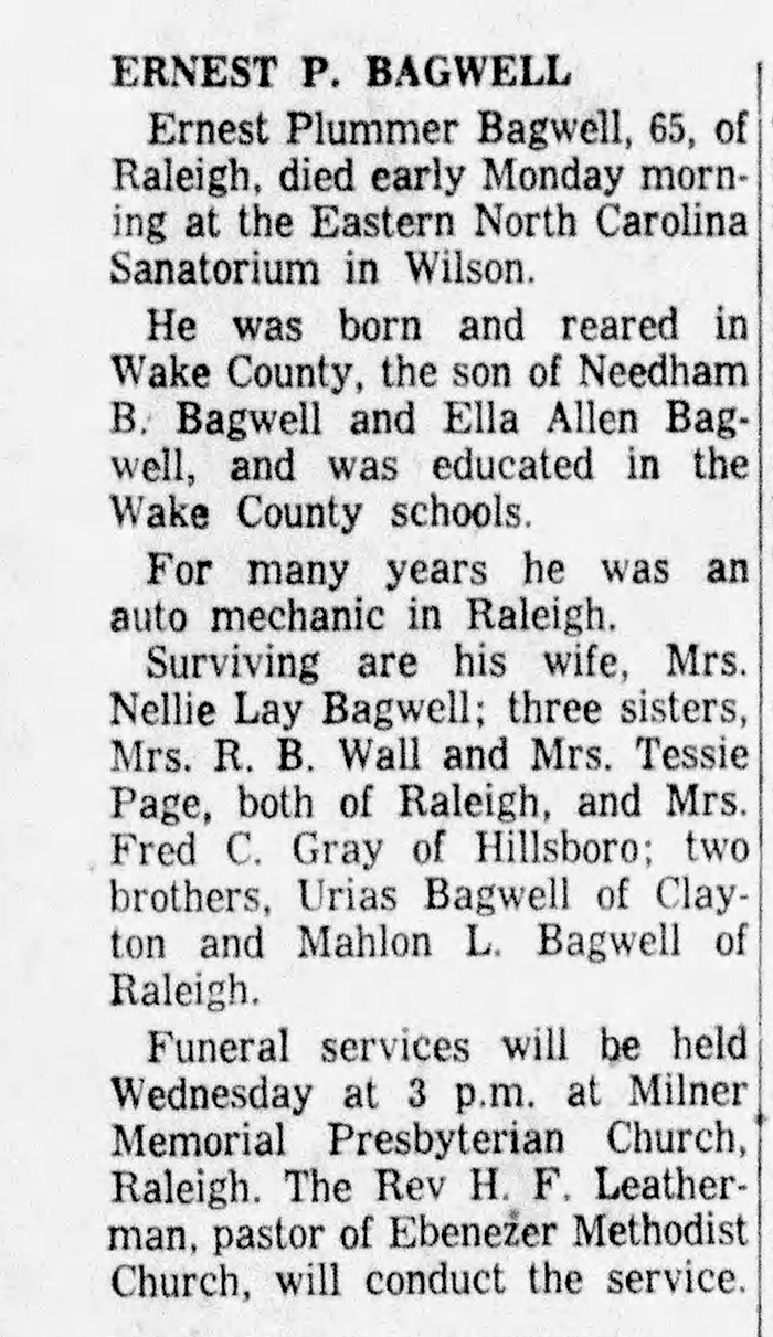Ernest Plummer Bagwell - Obituary