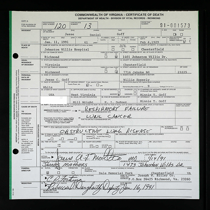 Certificate of Death - Commonwealth of Virginia
