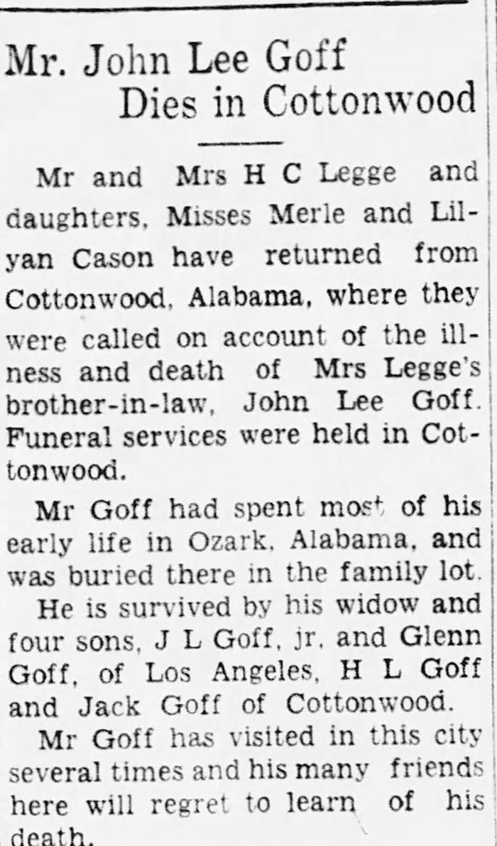 John Lee Goff - Obituary