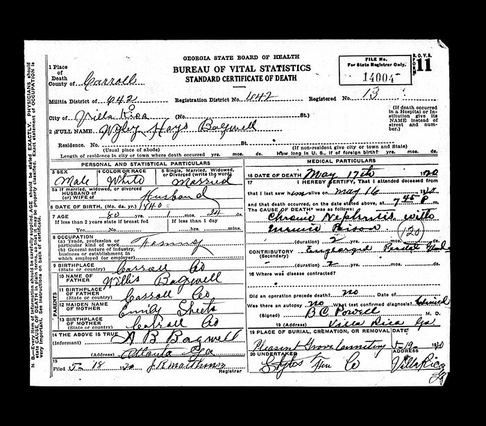 Wiley Hixon Bagwell - 1840 to 1920