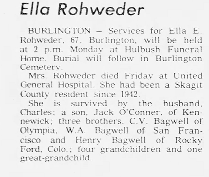 Elizabeth Ella (Bagwell) Rohweder - Obituary