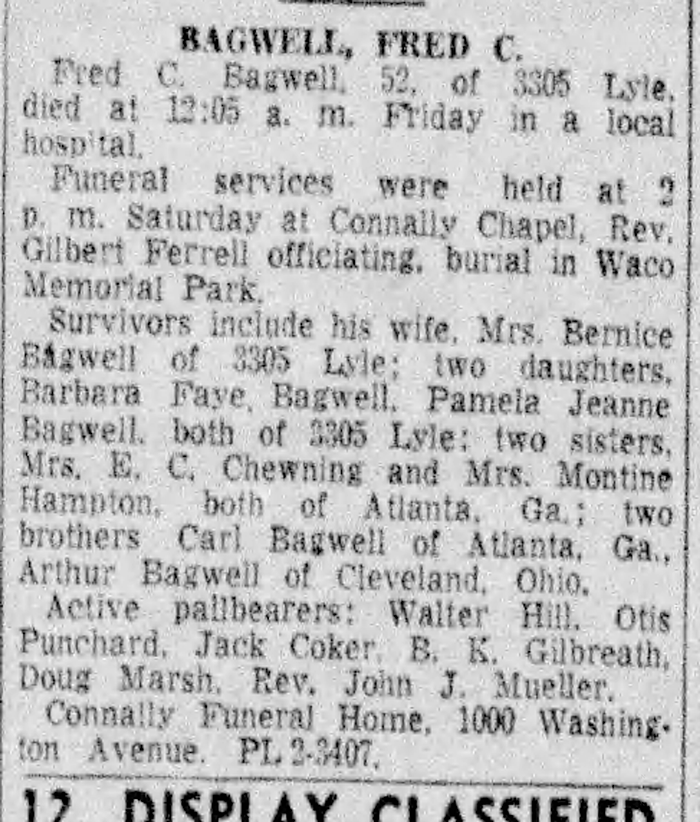 Fred Cornelison Bagwell - Obituary