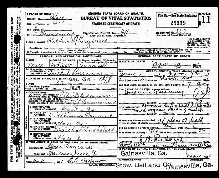 Certificate of Death - State of Georgia
