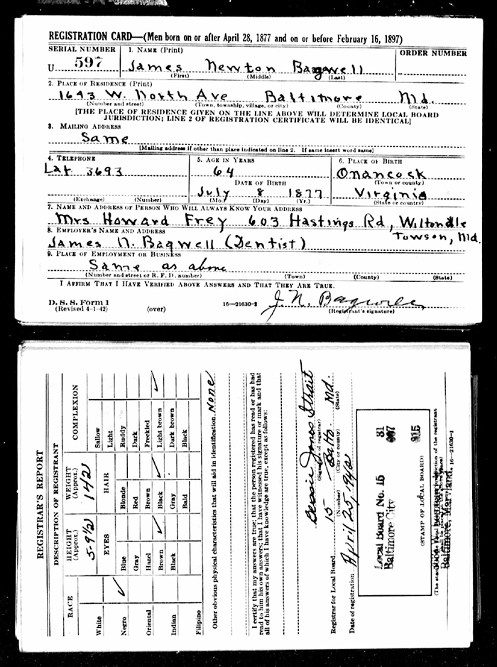 WWII Registration Card