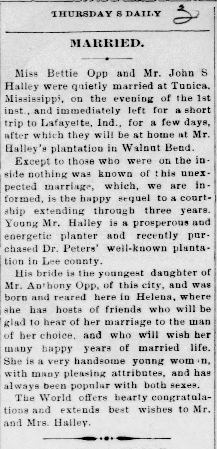 John Snyder Halley and Elizabeth Opp - Marriage Annoucement