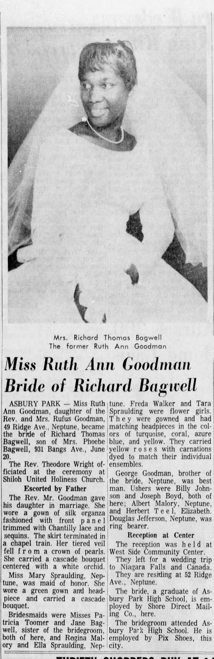 Surviving to cherish his memory and continue his legacy of love are his wife of 60 years, Ruth Ann Bagwell (Goodman), his son, Richard Clayton and daughter, Robin T. Patterson (Clarence), Dover, DE, three sisters: Dr. M. Monica Sweeney, Brooklyn, NY, Jane M. Moreland (Curtis) Long branch, NJ and Hazel F. Samuels, Tinton Falls, NJ, 11 grandchildren (all who assisted in his care), 13 great-grandchildren along with a host of nieces, nephews and cousins. He is also survived by Tucker, his devoted and very protective 4-legged friend and bodyguard.
