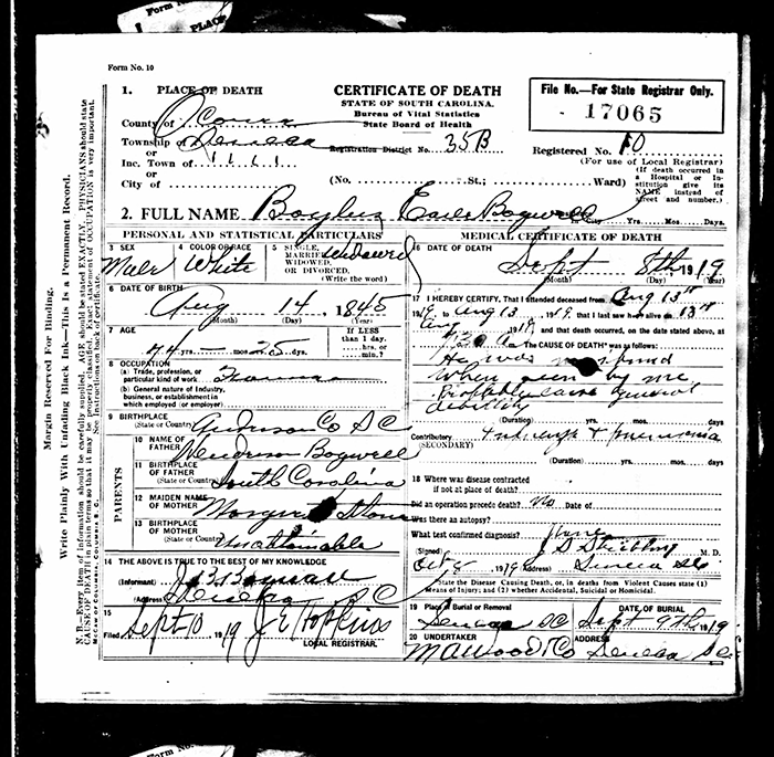 - [S1570] Essie Jane Bagwell, South Carolina Death Certificate: Essie Jane Bagwell.