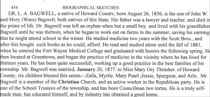 - [S1481] Charles Blanchard, Counties of Howard and Tipton, Indiana, Page 418 - William Bagwell