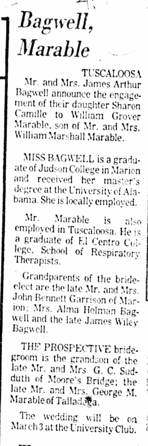 Sharon Camille Bagwell and William Marable - Engagement Annoucement