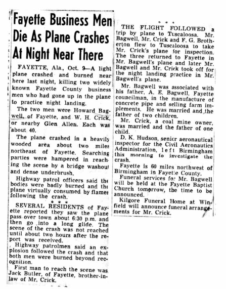 - Howard Burton Bagwell+ b. 11 Oct 1910, d. 8 Oct 1947
