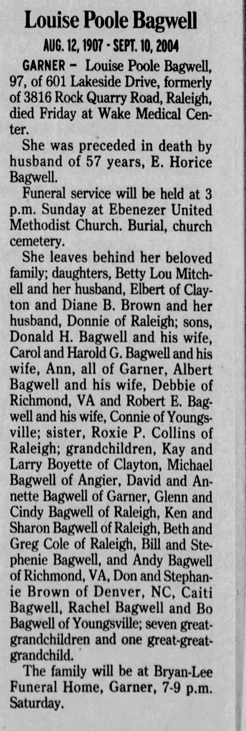 Children of Louise Mae Poole and Edward Horice Bagwell