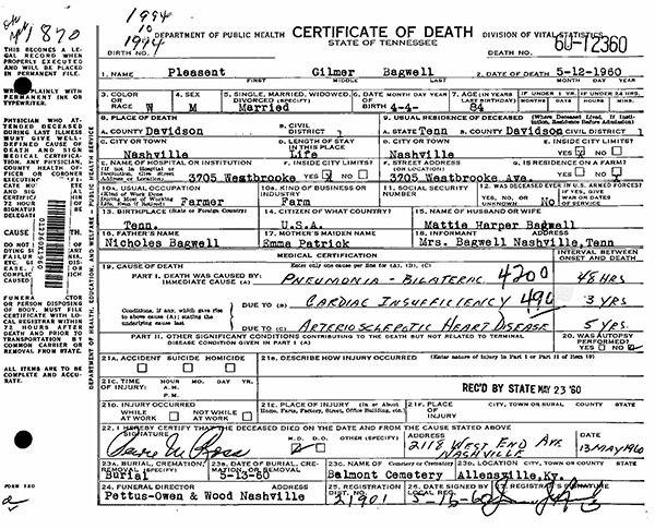 - Cora Bagwell b. 1 Jul 1903, d. 9 Feb 1985