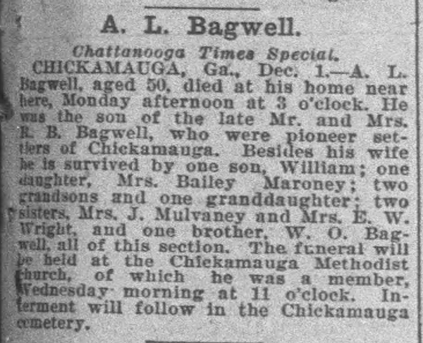 - [S3456] A. L. Bagwell Grave Stone, Find a Grave, www.findagrave.com, http://www.findagrave.com/cgi-bin/fg.cgi