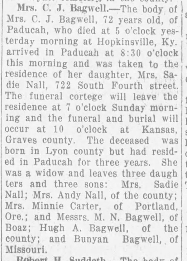 - Ambie B. Bagwell b. 2 Jan 1875, d. 26 Jan 1961