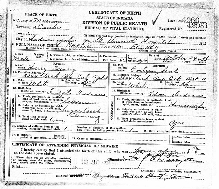 Michael J. Feeney is the son of Harry J. Feeney and Evelyn Elizabeth Seal. Michael J. Feeney married Mary W. Micheli, daughter of William Micheli and Betty Bartenbach, on 27 June 1970 at Indianapolis, Marion County, Indiana.