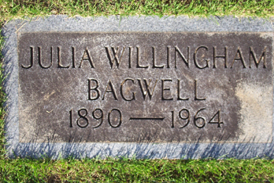 - [S4191] Julia Mae Willingham Bagwell Grave Stone, Find a Grave, www.findagrave.com, http://www.findagrave.com/cgi-bin/fg.cgi